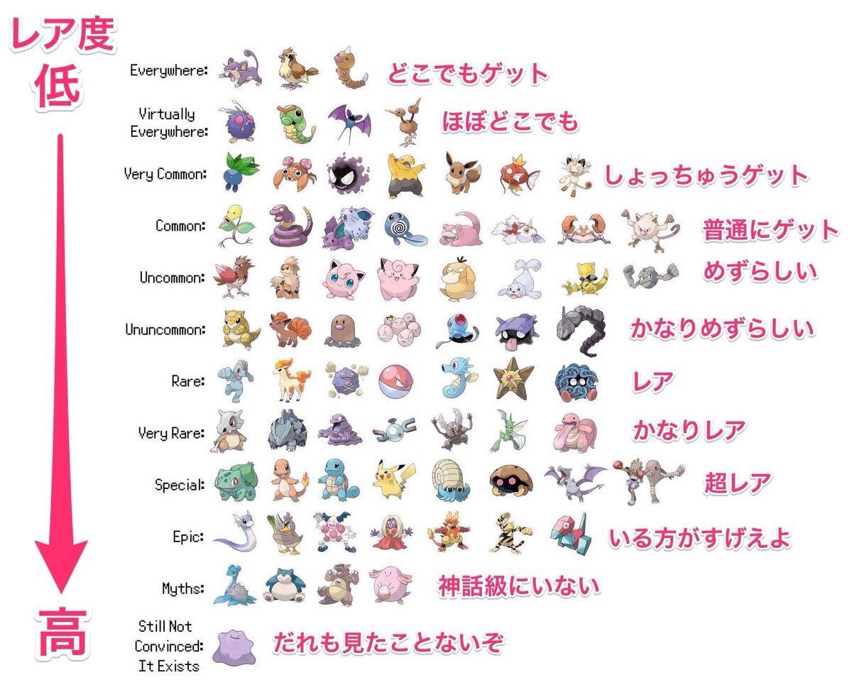 【便利?】ポケモンGO、モンスターのレア度一覧表画像
