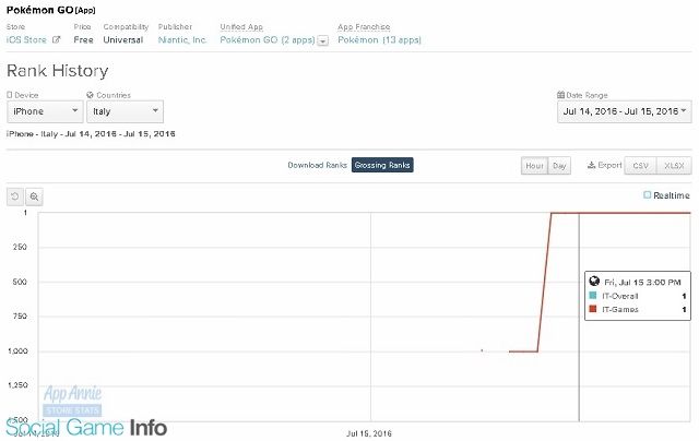 任天堂<7974>とポケモン、Nianticの新作アプリ『Pokémon GO』がスペインとイタリアでも7月15日(現地時間)にリリースされたが、同日中に両国のAppStore売上ランキングで首位に立った。AppAnnieのまとめによると、Google Playでも2位につけており、数日内に首位奪取となりそうだ。他の国でも首位をキープしている。